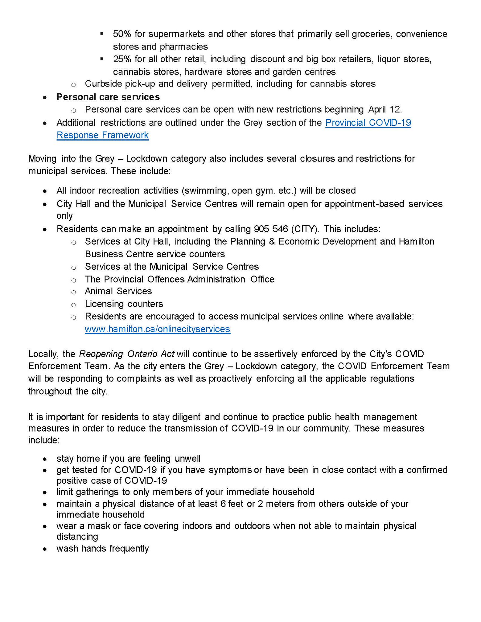 Locally, the reopening ontario act will continue to be assertively enforced by the city's covid enforcement team.