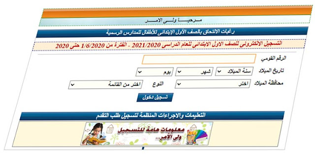 الموقع الالكترونى لتقديم الصف الأول الابتدائى لعام 2021.